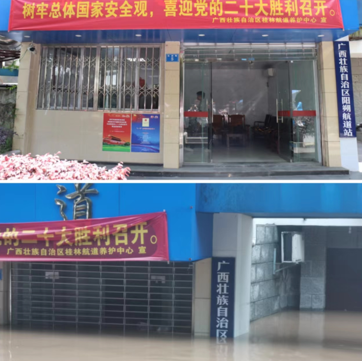 6月18日以來,受強降雨影響,桂江、湘江、洛清江、古宜河幹支流出現了漲幅0.5~5.8米的漲水過程,其中桂江幹流及支流桃花江、大溶江,湘江幹流及支流灌江等23條河流(河段)44站次出現了超警0.25~4.94米的洪水。漓江桂林水文站于6月22日5時05分出現147.9米的洪峰水位,超警1.9米;6月22日14時漓江陽朔水文站出現113.11米洪峰水位,超警3.61米;6月22日15時50分平樂水文站出現104.29米洪峰水位,超警4.79米;此輪洪水為漓江、桂江今年入汛以來最高水位。