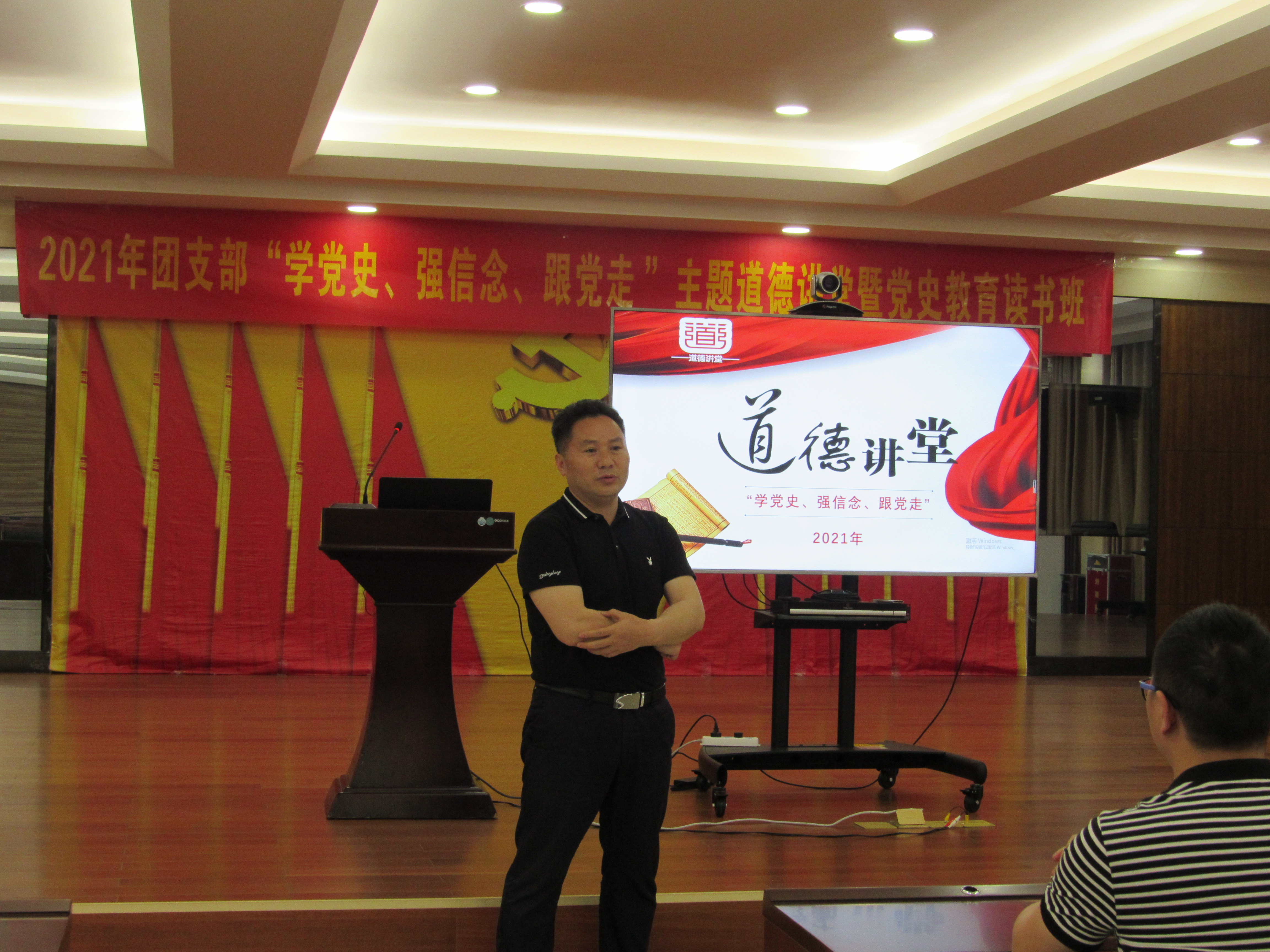 開展主題道德講堂暨黨史教育讀書班。5月12日上午,該團支部舉辦“學黨史、強信念、跟黨走”主題道德講堂暨黨史教育讀書班,共有團員青年17人參加。道德講堂分為自我反省、唱一首紅歌、看一部革命短片、聽一段經典朗誦、講一個紅色故事、談一番感悟、送一份吉祥、作點評八個環節,将黨史學習教育與道德講堂相結合,豐富道德講堂内容形式,突出思想引領。